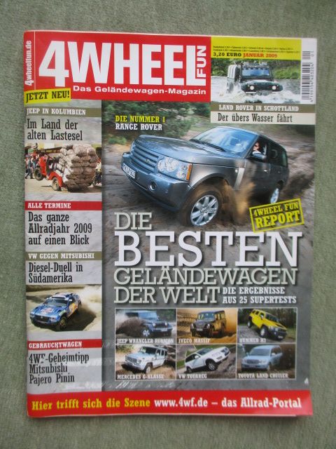 4 Wheel Fun Januar 2009 mit Iveco Massif, Test: Audi Q5 2.0TDI quattro,Volvo XC60 2.4D,Mercdes Benz ML 420 CDI, Vergleich: Lada Niva Hunter 4x4 1.7i Autogas und Range Rover TDV8, Tour durch Kolumbien,gebrauchtes Heft