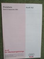 Audi A2 Typ 8Z Preisliste 1.4 1.6FSI 1.4TDI 1.2TDI +colour.storm +S line Werksangehörigen Preisliste 8.9.2003