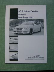 AC Schnitzer Preisliste E92 Coupe 2006, Stand:Oktober 2006,neu,schwarz/weiß.