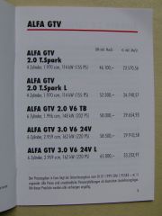 Alfa Romeo GTV Preisliste September 1999 NEU
