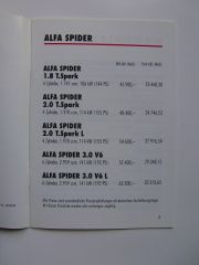 Alfa Romeo Spider Preisliste 1/1999 NEU