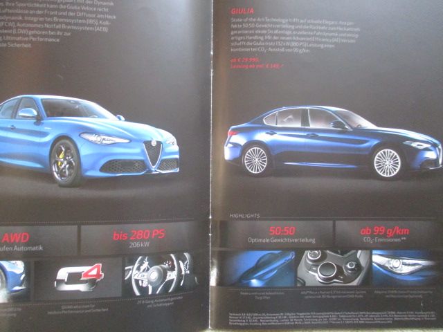 Alfa Romeo Stelvio First Edition +Giulia +Giulietta +Mito Flyer Österreich A5 Format März 2017