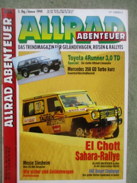 Allrad Abenteuer Januar 1994 Test und Technik Toyota 4Runner 3.0 TD Special, Mercedes Benz 350GD Turbo kurz, UAE Desert Challenge,gebrauchtes Heft