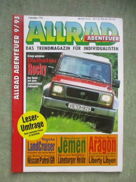 Allrad Abenteuer September 1993, Test & Technik Toyota LandCruiser KJ73, Daihatsu Rocky, Nissan Patrol GR Station,Rallye Baja Aragon Espana, Scouttour Liberty Raid Libyen,gebrauchtes Heft