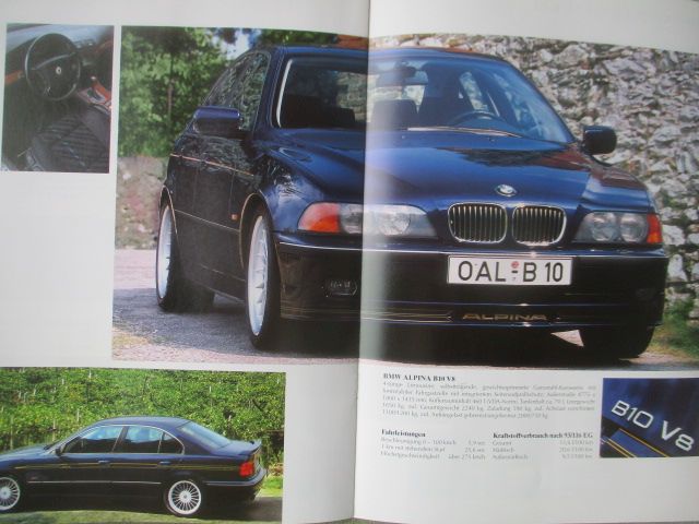 Alpina Februar 1997 Modelle: B3 3.2, +Cabrio und touring, 4.6 Coupé E36, B10 3.2 +Touring,V8 E39,B12 5.7E-Kat E38,12 Seiten stark, Preisliste dabei, guter Zustand.