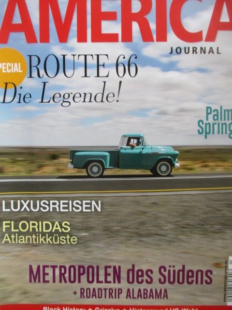 America 2/2024, die Route 66 die Legende, Palm Springs,Floridas Atlantikküste, Roadtrip Alabama,schönes Heft.