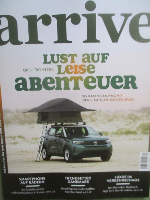 arrive 4-2025 Lust auf leise Abenteuer, Opel Frontera,Audi A6 e-tron, Renault Scenic E-Tech, GWM Ora 07, Xpeng P7,Mercedes-Maybach EQS SUV,Citroen Ami Buggy,neuwertiges Heft