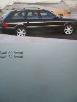Audi 80 Avant +S2 Typ89 B4 Katalog März 1995,Motoren: 1.9 TDI 66kw, Benziner: 2.0+E 2.6E,2.8e,quattro,S2,technische Daten,Farben/Polster,neuwertiger Zustand,sehr selten.