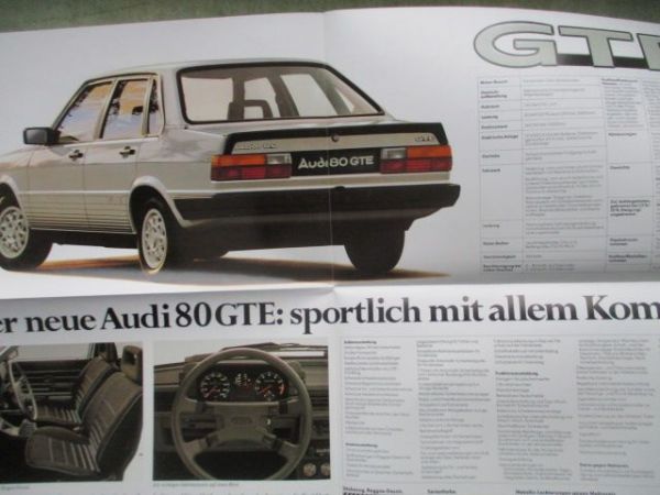 Audi 80 GTE Typ81 Prospekt November 1982,gefaltet,A2 Format,neuwertiger Zustand.
