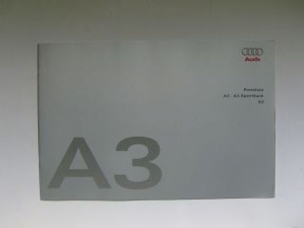 Audi A3 Sportback Prospekt April 2006 +Preisliste NEU