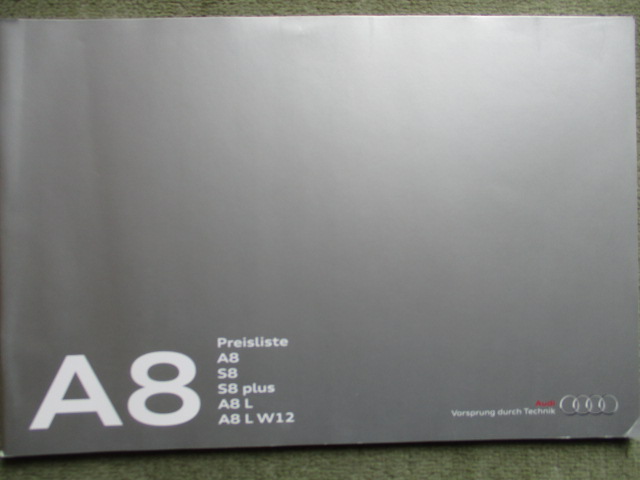 Audi A8 (4N) S8 +S8 plus,L +W12 Preisliste September 2015,63 Seiten stark.