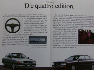 Audi Die quattro Edition 10 Jahre Prospekt 80 + quattro 20V Coup