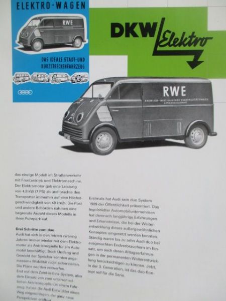 Audi duo Oktober 1996, Generation 1989,1991 und A4 Avant 1996, DKW Elektro RWE Laster,19 Seiten stark,selten.