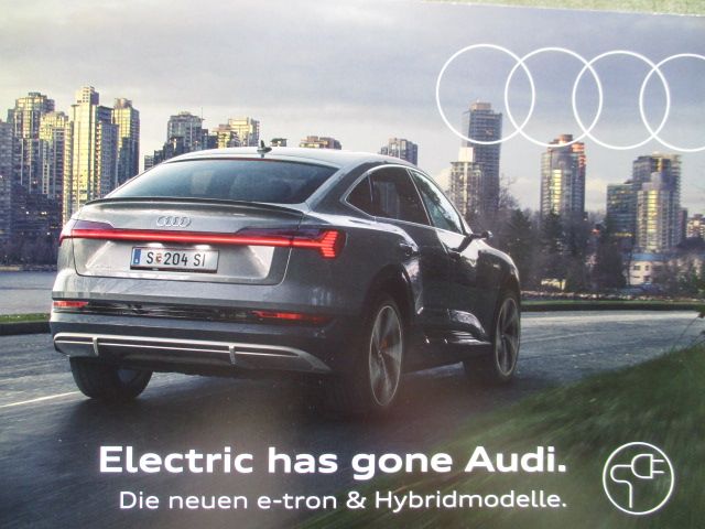 Audi e-tron Juni 2021 Sportback +S,Q4 e-tron,e-tron GT,RS,A3 Sportback,A6+Avant,A7,A8,Q3 +Sportback,Q5 Q7 Q8,51 Seiten stark mit Preisen,Version Österreich,neuwertiger Zustand.