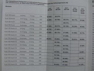 Audi Preisliste 100 Avant Typ44 12.September 1983, sehr selten.