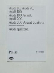Audi Preisliste 80 90 100 +Avant 200 +quattro IAA 1987, plus quattro sehr ausführlich, selten.