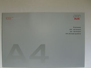Audi Preisliste A4 +Avant +S4 +allroad quattro April 2009, 31 Seiten stark.