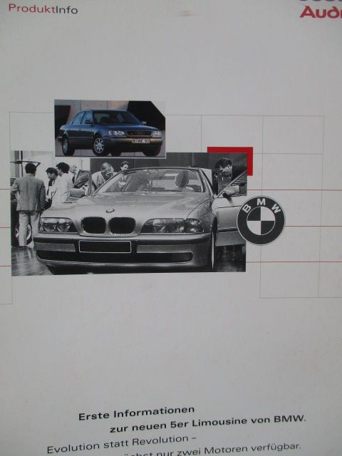 Audi Produktinformation Audi A6 und BMW 5er Limousine E39 Erste Informationen intern Okober 1995,8 Seiten stark,sehr selten.