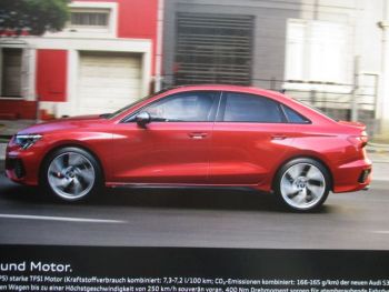 Audi S3 Sportback +Limousine Katalog März 2021 Typ8Y,Motor 228kw/310ps TFSi, 17 Seiten stark mit Preisangaben, Version Österreich.