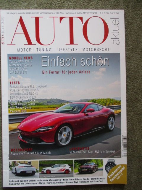 Auto aktuell 3/2020 Taycan Turbo S, e-tron Sportback,VW ID.3,Suzuki Swift Sport Hybrid,Gulia, AMG GLC43,X6M Competition,GLE,Grandland X hybird/DS7 Crossback PHEV,Peugeot 2008,BMW M8 Competition Gran Coupé,VW T-Roc Cabrio, Mégane R.S.Trophy-R, BMW M235i Gran Coupé,Ford Transit Custom Nugget, BMW Classic u.a. mit dem E3,Porsche 911 Carrera, gebrauchtes Heft.