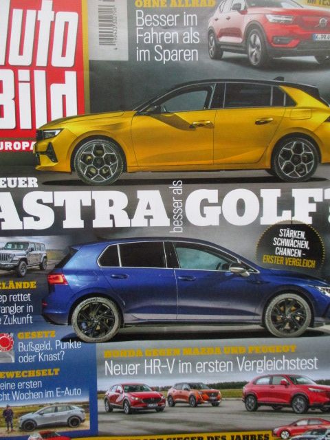 Auto Bild 4/2022 Golf8 vs. Astra L,Volvo XC40,HR-V vs. CX-30 vs. 2008,Wrangler Rubicon 4xe,Kia EV6,BMW F40 gebraucht