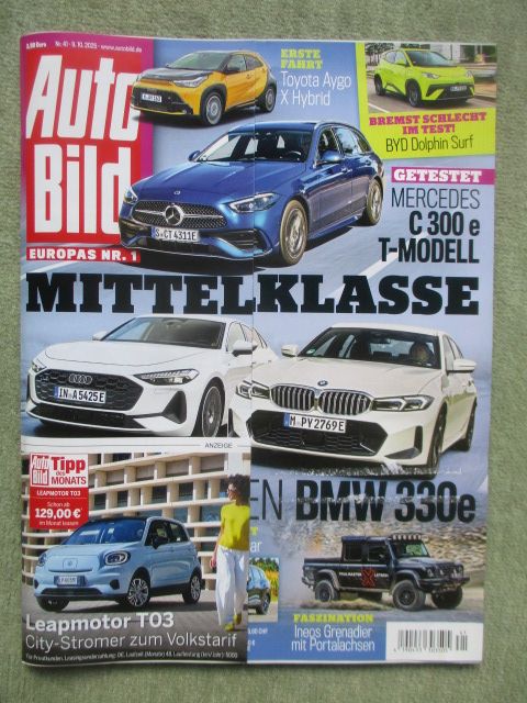 Auto Bild 41/2025 mit Toyota Axgo X Hybrid,KGM Musso EV 4WD,KGM Torres Hybrid,Corvette ZR1,VGT: AudiA5 Limousine e-hybrid quattro und BMW 330e xDrive G20 Limousine,Mercedes Benz C300e T-Modell W206,BYD Dolphin Surf,Winterreifen im Supercheck,Gebrauchtwagen: Renault Kadjar 1.2 TCe Crossborder-S,Ineos Grenadier mit Portalachsen,gebrauchtes Heft