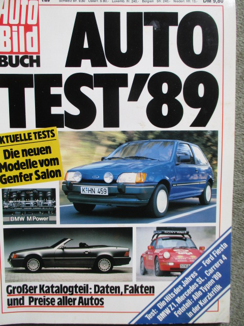 Auto Bild Buch Autotest 1989 Ford Fiesta 1.4S vs.R5 GTX vs. Peugeot 205XS vs. Polo GT vs. AX GT,Härtest Porsche 911 C4,Cizeta-Moroder V16T,Mercedes Benz 500SL R129, BMW Z1 Test, Vergleichstest Opel Vectra A 2.0iCD vs. Passat CL, BMW M5 E34, Härtetest VW Corrado,Vergleich: Sunny SLX vs. Mazda 323GLX 1.5 s. Fiat Tipo 1400i.e. vs. Kadett 1.6i GL vs. Corolla Compact 1.3XL vs. Seat Ibiza 1.5iGLX vs. Colt 1500GLXi vs. Golf2 CL vs. Escort 1.4iCL vs. 309GR vs. R19 GTS und Honda Civic 1.3L,Vergleich: Patrol 2.8 vs. Range Rover V8 vs. Suzuki SJ Samurai long und VW T3 Multivan Syncro,vs. Isuzu Trooper 2.6 vs. 280GE STation vs. Pajero 2600 lang,gebrauchtes Heft.