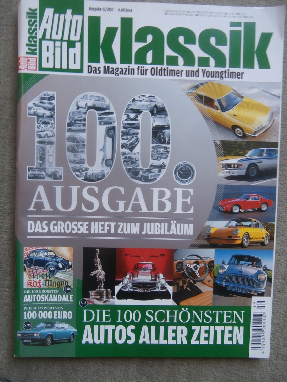 Auto Bild klassik 12/2017 100.Ausgabe BMW 507,Tipo 2B,E-Type,230/8,Mercedes 600 (W100),Niesmann+Bischoff Clou 670F,Rolls-Royce Silver Ghost,Toyota Crown Super Saloon,gebrauchtes Heft.