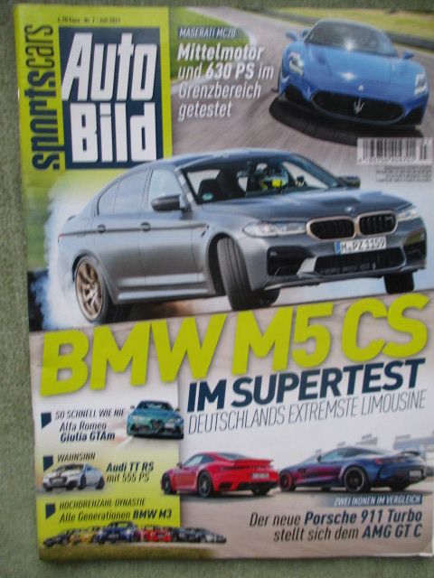 Auto Bild sportscars 7/2021 Alfa Romeo Giulia GTAm,Audi TT RS,M3 E30 vs. E36 vs. E46 vs. M3 F80 vs E90,Abt RS 6-R Signature Edition,Cayenne,F-Pace SVR, Maserati MC20, neues 2er Coupé,BMW M5 CS, M3 vs.Giulia QF,APR TT RS,911 turbo vs. AMG GT C,Alpina XB7,Dodge Charger SRT Hellcat vs. Panamera Turbo S E-hybird,BMW M340i xdrive vs. Kia Stinger 3.3AWD,gebrauchter Audi RS6 Avant TypC6,gebrauchtes Heft.