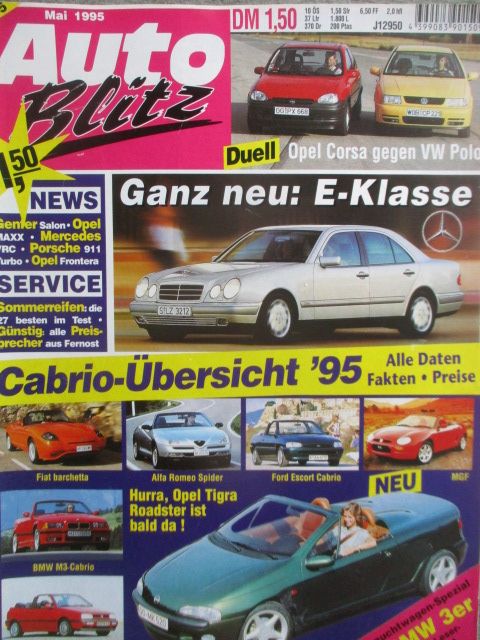 Auto Blitz 5/1995 Tests und Fahrberichte: VW Polo 55Servo vs. Opel Corsa B 1.4i Swing,VW Golf III GTi Colour Edition,E200 Diesel W124,Ford Mondeo 24V,BMW M3 Cabriolet E36,Chrysler Grand Voyager AWD,Rover 623Si,Lancia Y10 Ville,Opel Frontera TDi,Toyota Rav4 4-türer,Brabus E-Klasse,mtm Audi A4 B5,AC Schnitzer BMW 328i E36,Abt VW Golf colour concept,gebrauchtes Heft.