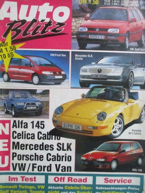 Auto Blitz 6/1994,Tests & Fahrberichte: VW Golf III Variant, Daihatsu Cuore vs. Fiat Cinquecento,Cadillac Seville,Renault Twingo,Toyota Corolla,Suzuki Vitara Cabrio, Nissan Terrano II Cabrio,Strosek Lamborghini,gebrauchtes Heft,beschädigt.
