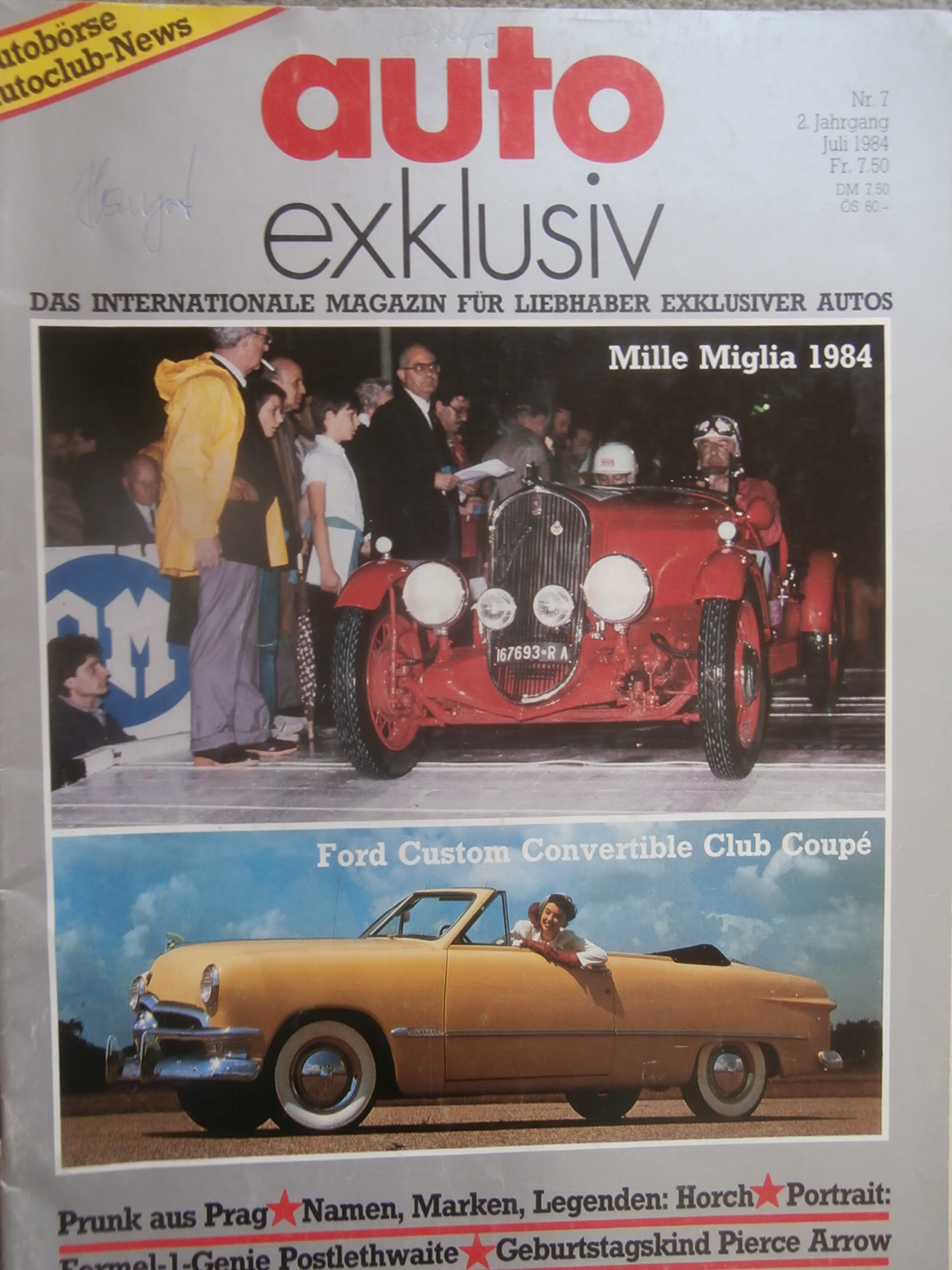 auto exklusiv 7/1984 Ford Custom Convertible Club Coupé,Daimler SP250,Mercedes Benz 190E 2.3-16 W201,Maserati 3500GT,Austin,gebrauchtes Heft,Notiz auf dem Deckblatt,Angebot!