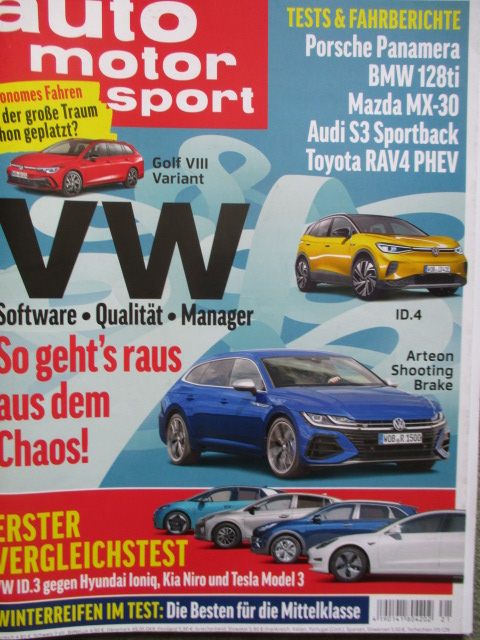 auto motor & sport 21/2020 Porsche Panamera Turbo S,A8 vs. G12 vs. BR223,VW ID.3 vs. Ioniq Elektro vs. e-Niro vs. Tesla Model3,Toyota RAV4 PHEV,Citroen Ami, BMW 128ti,Skoda Octavia RS iV,Audi S3 Sportback,SQ8 TFSI,BMW 225xe vs. B250e,Mazda MX-30,gebrauchter BMW 1er und 2er,gebrauchtes Heft.