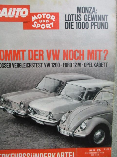 Auto Motor & Sport 26/1962,Vergleichstest: VW 1200 und Ford 12M und Opel Kadett A, ausführlicher Test/Vergleich