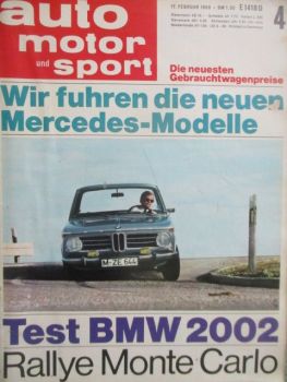 auto motor & sport 4/1968, Test BMW 2002,Fiat 850 Special, Simca 1200 S coupé, gebrauchtes Heft.