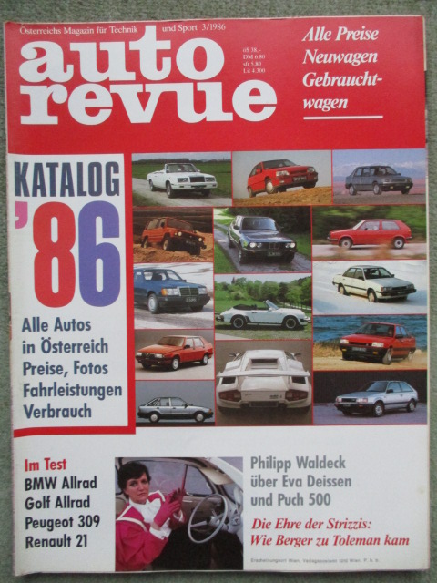 auto revue 3/1986 BMW 325i und 325iX E30, Alfa Romeo 75 2.0, Puch 500,gebrauchtes Heft.