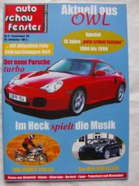 auto schau fenster 9/1999 Porsche 911 turbo,R 1150GS,CLK W208, 15 Jahre auto schau fenster,
