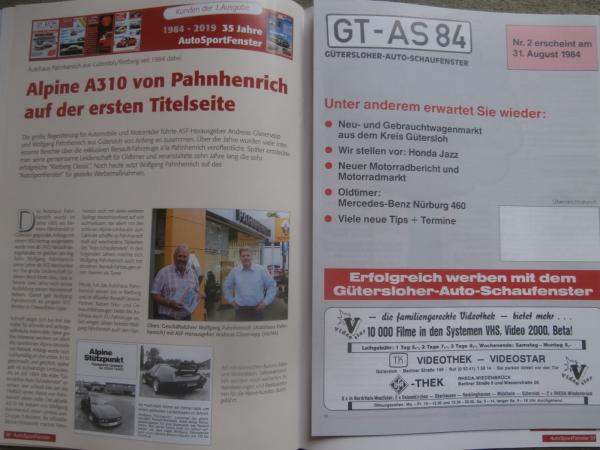 Auto Sport Fenster 7+8/2019 +Erstausgabe 1984 +35 Jahre Spezial,BMW 7er,Skoda Scala,Porsche 911 Speedster,Renault Twingo,Bugatti La Voiture Noire,Westfalia Motorwagen,schönes Magazin.