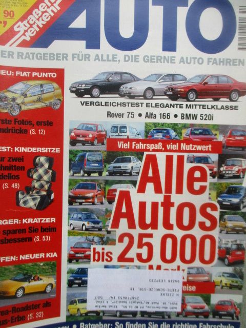 Auto Straßenverkehr 14/1999, Tests: Mazda Premacy 1.9, Fiat Punto, Rover 75 2.0 V6 und Alfa Romeo 166 2.0TS und BMW 520i E39, Mercedes Benz A190 W168, Kai Roadster, gebrauchtes Heft