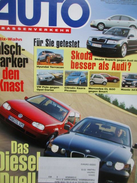 Auto Strassenverkehr 3/2002 mit Renault Vel Satis 3.5 V6 24V, Hyundai Terracan 2.9CRD,BMW 320td compact E46 und VW Golf 1.9l TDI,Skoda Superb 1.9ltdi und Audi A6 1.9l TDi, Mercedes CL600 uns MCC Smart City Coupe, Citroen Xsara Picasso 2.0HDI,Mazda 323F 2.0 Sportive,VW Polo 1.4l 16V und Opel Corsa C 1.2 16V,Gebrauchtwagen Saab 900 Cabrio,gebrauchtes Heft