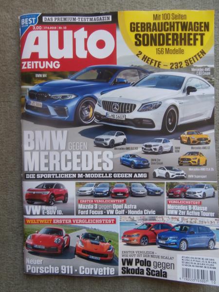 Auto Zeitung 10/2019 Porsche 911 Carrera S (992) vs. Corvette,Mégane R.S. Trophy,CR-V Hybrid vs. RAV4 Hybrid,V-Klasse,CLA,Abarth Special,Renault Caravelle S,VW Polo vs. Skoda Scala,VG: Focus vs. Civic vs. Mazda3 vs. Astra und Golf7,BMW 218d ActiveTourer F45 vs. B200d W147, BMW M Motoren,Forster FT649EB vs. Karmann Davis 620,ohne Gebrauchtwagensonderheft.