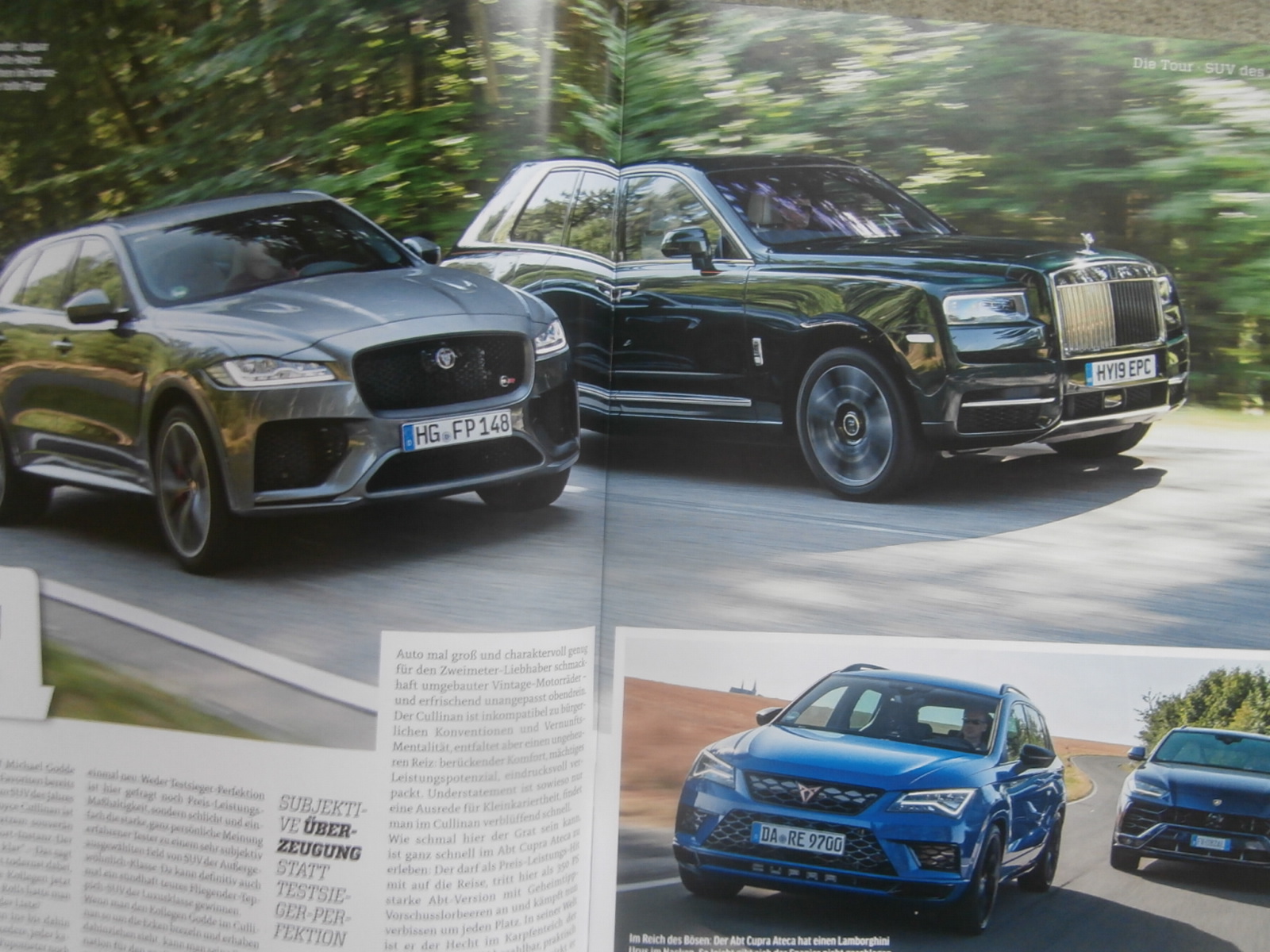 Auto Zeitung Abt Cupra Ateca vs.Stelvio vs. e-tron 55 vs. SQ8 vs. Alpina XD3 vs. X5 M50d vs. F-pace SVR vs. Urus vs. GLC63 S 4Matic vs. Porsche Cayenne Coupé vs. Rolls-Royce Cullinan,30 Seiten starkes Heft,sehr selten.