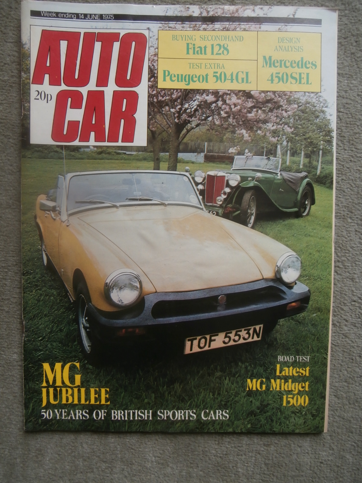 Autocar 14.6.1975 Fiat 128 Buying Secondhand,MG Midget 1500, Mercedes Benz 450SEL W116,Peugeot 504GL
