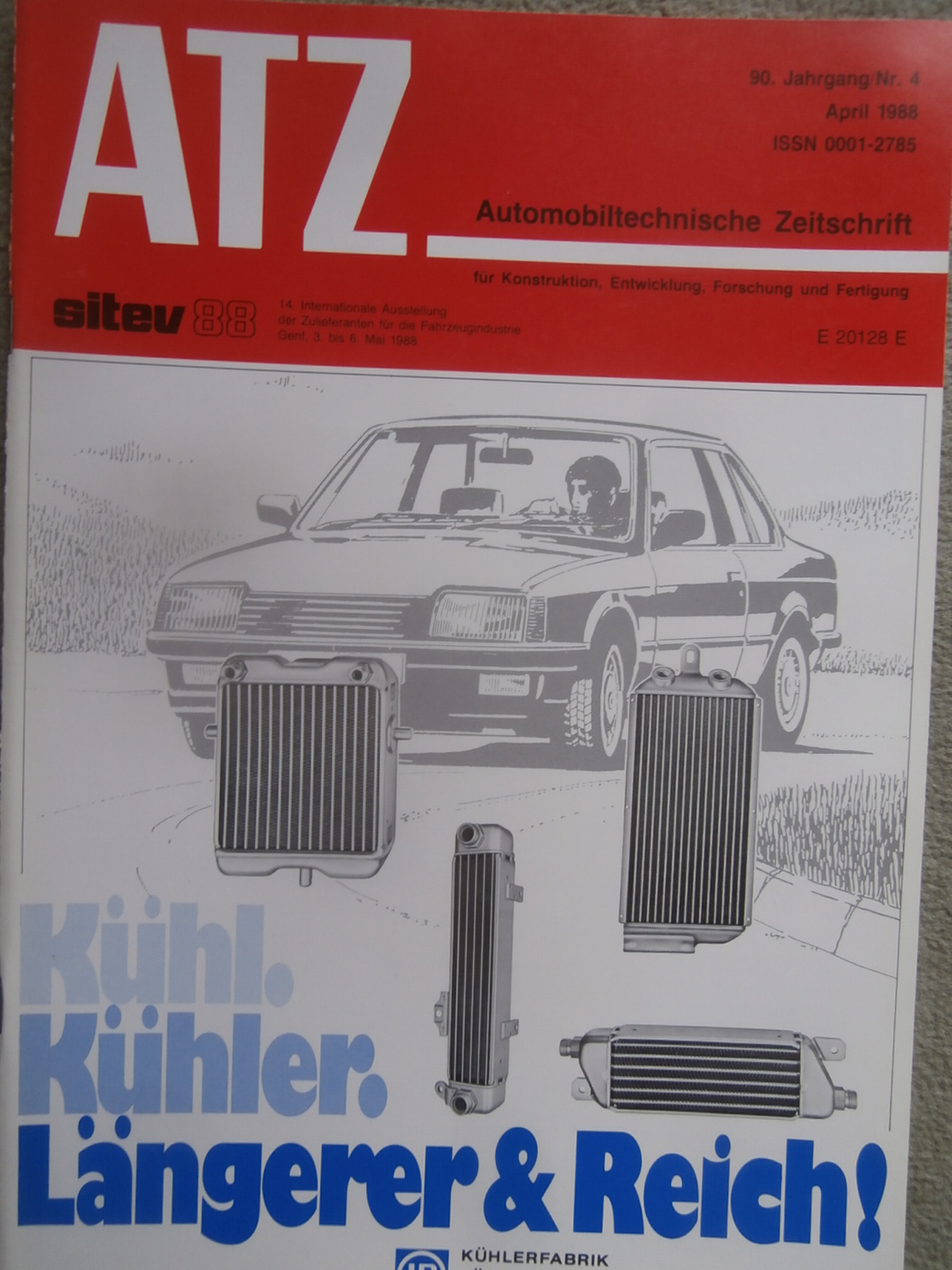 Automobil Technische Zeitschrift 4/1988 Schwingfestigkeitsprüfung von Personenwagen Achsfedern mit einer neuen Federprüfmaschine,Bericht von Hutter und Schütz, gebrauchtes Heft.