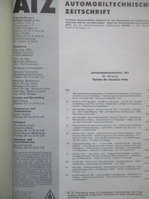Automobiltechnische Zeitschrift 1990, u.a. Passive Sicherheit BMW 850i E31,Aktive Hinterachckinematik von BMW,mechanischer Gurtschloßstrammer für BMW PKWs, Citroen XM V6, Audi 100TDI,Land Rover Discovery, Lancia Dedra,MAN Dieselmotor mit Katlysator im Linienbus,der Dieselmotor,Ford Fiesta XR2i,Porsche 911 turbo, Vespa Car,PKW: Nissan 300 ZX Twin Turbo, VW Polo,MAN Turbodieselmotor für Niederluromnibus,Sonderfahrzeug,guter Zustand, Jahresbuch Ausgabe,neuwertiger Zustand