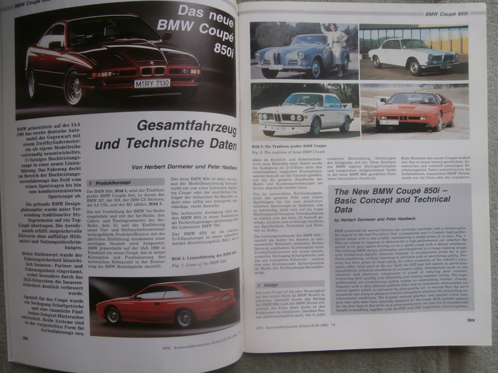 Automobiltechnische Zeitschrift 7+8/1990 BMW 850i E31 Gesamtfahrzeug und technische Daten,
