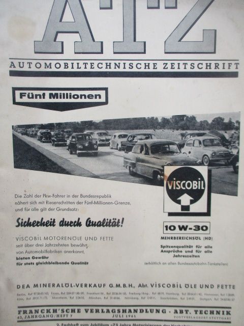 Automobiltechnische Zeitschrift April 1961 mit: Thema Karosserie, Verbesserung der Korrosionsbeständigkeit von Chrom-Nickel-Auflagen im amerikanischen Fahrzeugbau,zuer Eröffnung des neuen Daimler-Benz-Museum,mit 220SE Coupé und VW 1500, gebrauchtes Heft