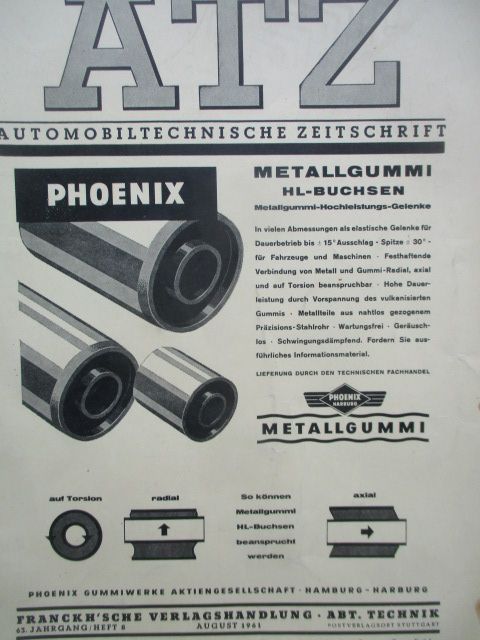 Automobiltechnische Zeitschrift August 1961,Thema Fahrzeug-Getriebe das automatische Getriebe der amerikanischen Compact-Cars, vergleichende Untersuchung über die Leistungsverliste in Lenkgetrieben für Kettenfahrzeuge,,Mercedes Benz L 338/44, ein Kleinauto aus Jugoslawien,sehr altes Heft