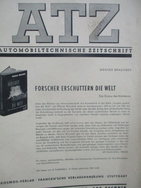 Automobiltechnische Zeitschrift November 1956, Motorenprogramm der Hanomag, Magirus-Deutz S5500 Saturn, die Schleppleistung von Viertakt- Dieselmotoren, gebrauchtes Heft