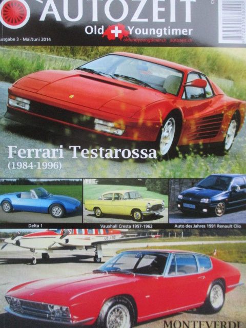 Autozeit 5+6/2014 mit Ferrari Testarossa (1984-96), Delta 1, Vauxhall Cresta (1957-62), Renault Clio, Monteverdi (1967-84) ein sehr umfangreicher Bericht,gebrauchtes Heft.